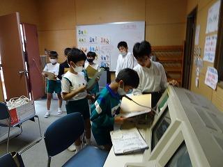 ↑環境調査隊ジョウナンジャーの皆さんが、メダカ水族館や環境調査についてのお願いを全校にお知らせをしました。総合での学びを発信しています。