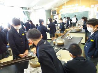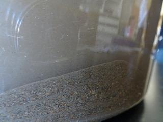 ↓6の2 理科 地層はどのようなことが繰り返されてできたのか、予想を立て、地層づくりの実験をしました。