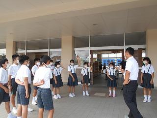↑保護者の皆様には、毎朝の旗当番での安全の見守りをありがとうございます。おかげ様で、子供たちは地域の温かさを感じ、安心して登校することができています。旗当番の方々も安全に十分注意してください。暑い日が続きますが、暑さ対策を十分にされて、今後ともどうぞよろしくお願いいたします。