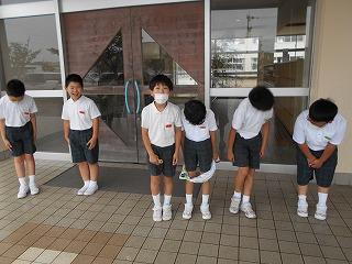↑ 毎日進んで、あいさつ運動、ご苦労様です。あいさつ運動をしている人へ、すてきなあいさつを返してくれるので、お互いに元気が湧いてきますね。礼儀正しい条南っ子です。