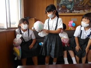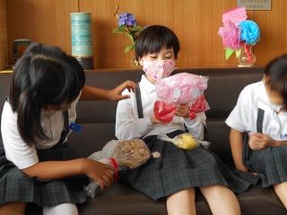 ↑ 昼休みに、3年生が図工で作った作品「ふわふわマイフレンド」が仕上がり、校長室へ見せに来てくれました。一人一人発表し、マイフレンドの名前や特徴を説明してくれました。手作りの新しいお友達ができて、とっても嬉しそうです。大切に、そして、仲良くしてくださいね。1年生も感動しながら聴いていました。