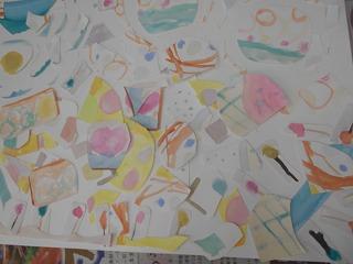 ↑ 5年図工 「心の模様」心の中をもようで表現してみました。見えない心を心の目でのぞき、表現しました。5年生の記念になる作品です。