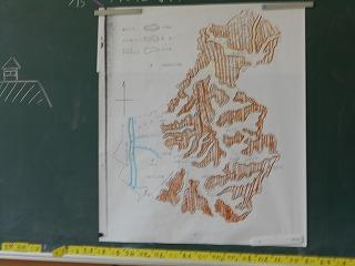 ↑ 3年生社会 津幡町の土地の様子を色分けしてみると、特徴が見えてきました。