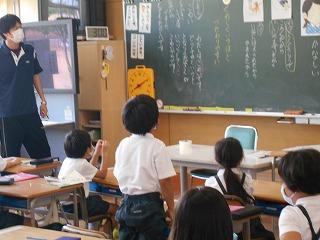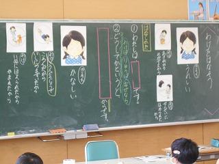 ↑1の3 国語 わけを話す学習です。「どうしてかというと・・・からです。」は、全学年で、どの教科でも使っていく話し方です。「私は楽しいです。どうしてかというと、・・・からです。」友達の発言をヒントに、どんどん発想が広がり、アイディアがうかんできました。みんなで学習するっていいですね。