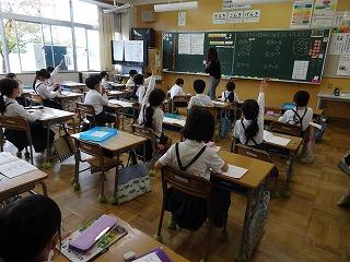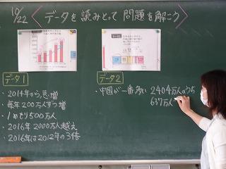 ↑↓5の1算数少人数 日本を訪れた外国人旅行者に関するデータを読み、目的に応じて必要な情報を選び問題を解いていきました。必要な情報を読む力は、生活の中でも必要な力となっていきます。