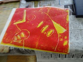 ↓6の1 図工 版画の学習です。色が塗り重ねられています。