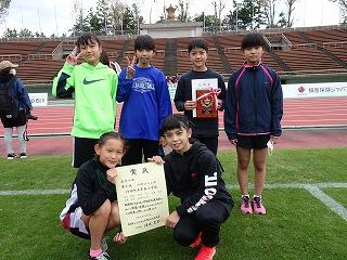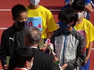 ↓閉会式で表彰されました。石川県中の小学校およそ100校の中での女子4位、男子2位、女子3区区間賞です。輝かしい成績、おめでとうございます!