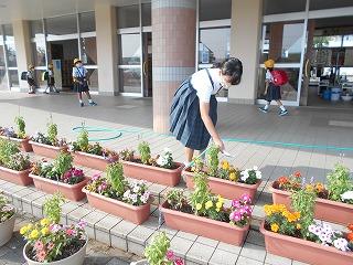 ↑ 朝から暑い日ですが、水をたっぷり浴びて、人権の花は涼しそうです。お世話ありがとう。