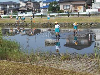 ↑大小さまざまなザリガニやメダカがいたようです暑いけれども、水の中は気持ち良かったです。