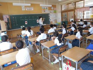 ↑2の2 道徳 国際理解の心を育む授業です。外国の人と仲良くなるにはどんな心があるとよいのかな。言葉は通じないのに、一緒に遊ぶと、どうして仲良くなれるのかな。