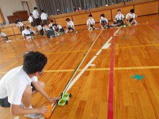 ↑3の3 理科 ゴムの伸ばし方で動く距離は変わるか、実験をしています。実際に実験をして、その結果をもとに考察することで、「深い学び」となっていきます。