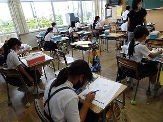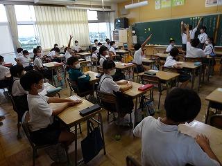 ↑5の2 学級会 司会を立てての話し合い活動です。今年度は縦割り活動は控え、その分、学級会での話し合い活動を充実させています。自分の意見を理由をつけて述べ、折り合いをつけながら、決定していく話し合いの仕方は今後いろいろな場で求められる力となっていきます。