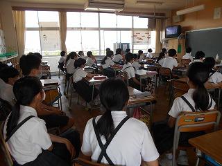 ↑ 1年生の内科検診です。ソーシャルスタンスと換気に気を付けて実施しました。