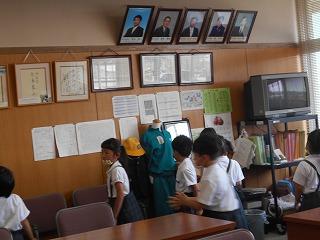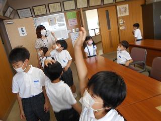 ↑ 今日は1年2組さんが、生活科で校長室探検にやってきてくれました。「校長室には何がありますか」と上手に質問して、実際に見て回り、たくさんの「みつけるに挑戦」ができました。とても行儀がよく、とても元気で、しっかりと話を聞くことができる1年生です。これから、たくさんのことを学んで成長してくださいね。