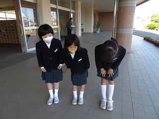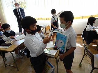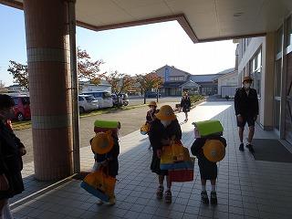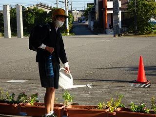↑気持ちの良いお天気です。後期の環境委員会さんが、前期に引き継ぎ、水やりをしています。図工で使うのかな?算数で使うのかな?1年生が箱をたくさん持ってきました。ご協力、ありがとうございます。礼儀正しい挨拶の人が増えてきています。すてきです。