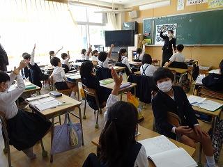 ↑ 分かる授業にするために、先生も頑張っています。今日は先生の先生をお招きして、授業を見ていただき、分かる授業にするためにご指導いただきました。↓