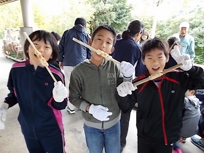 グループで協力をして,こねて,巻いて,焼いたパンはもちもちでおいしかった!忘れられない思い出の味になったね。
