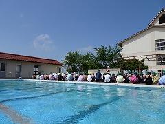 今日はプール開きを行いました。2年ぶりのプール開きです。6年生がプル掃除をしてくれたおかげで、全校のみんながプールに入ることができます。今年のプールは感染対策を徹底してのプール学習となります。いつもは2学級で入りますが、今年は1学級だけで入ります。マスクをしませんので、給食の時と同じように、しゃべらず行います。友だちと距離をとって、授業の後は、プールの水でプールサイドも殺菌します。しゃべらなくても、プール学習は楽しいですし、健康的な運動です。命を守る水泳ができるよう、1時間、1時間を大切にして、学習していきたいと思います。