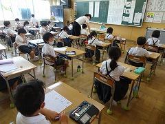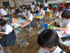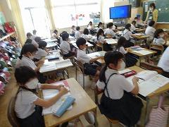 ↓4年1組プール学習です。だれもしゃべらず、プールのコロナ対策の約束をしっかり守って学習を進めています。感心です。