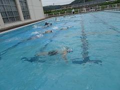 ↑4年2組、2年ぶりのプールです。今年のプール学習の目標は立てたかな?真剣に練習していました。コロナ対策のプール学習の約束を守って、練習に集中していました。
