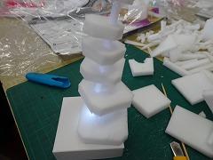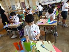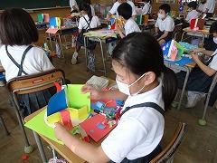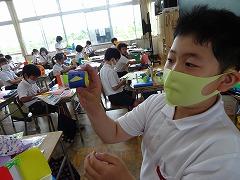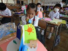 ↓6年2組 図画工作 光の形 光の見え方の違いを楽しむオブジェを制作しています。