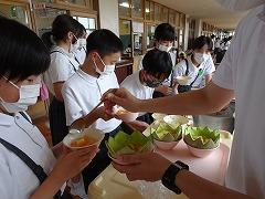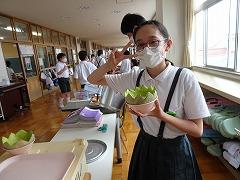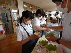 ↓富山産のフレッシュなメロンが届きました。果肉が黄色と緑の2種類のメロンがあります。今日のフルーツポンチに入るそうです。また、6年生には「小学校の思い出給食第1号」として、サプライズがあるそうです。楽しみです。
