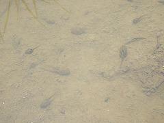 ↑3本ずつ植えたイネは何本になっているかな?稲の背丈はどれくらいかな?手ざわりは?実際に観察しているから発見できることがたくさんありました。おたまじゃくしも発見!