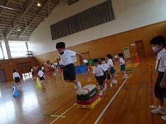 ↓今日は1年生対象の「サスケ」でした。運動委員会さんが、上手に1年生に声かけをして、サポートしていました。1年生は、いろいろなコースを回って、運動する楽しさを味わっていました。