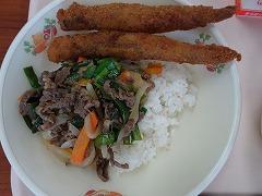 ↓ 今日の給食です。今日のメニューは、プルコギ丼、シシャモフライ、もずくのスープでした。プルコギとは、韓国料理の定番、焼肉とすき焼きの中間のような料理です。今日は牛肉に、しめじ、玉ねぎ、にんじん、にらが加わり、さらに、にんにく、しょうが、りんごでおいしさを極めてありました。ご飯にかけて、おいしくいただきました。シシャモフライは、カリカリで香ばしく、もずくスープは、とろーりなめらかで、糸かまぼこも加わり、のど越しもよく、蒸し暑い日でも食欲がわいてくるメニューでした。