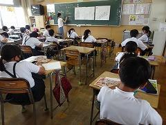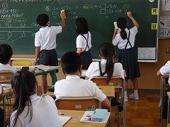 ↓5の2 算数 少人数 小数で何倍かを求めるときは、どんな計算になるか考えました。図・式・言葉でそれぞれが表現し、確実に理解するようにしています。