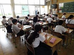 ↓今日の給食です。さばのみりん漬け、なすのみそいため、すまし汁でした。なすのおいしい季節になってきました。みそ炒めにもチャレンジしてみようと思いました。豚肉と、ピーマン、にんじん、玉ねぎも一緒に炒めてありました。体の調子を整える夏野菜です。いろいろアレンジして料理し、たっぷりといただきました。