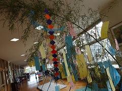 PTAの方からいただいた立派な笹です。ありがとうございます。1年生が願い事を書き、飾りも作りました。