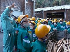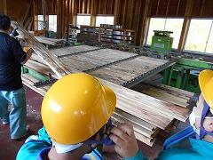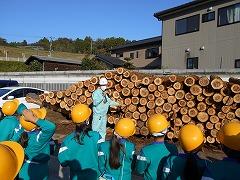 ↑杉の木の伐採を実際に見せていただきました。木が伐採され、木材となり、製材される過程を説明していただきました。60年以上かけて育った杉の木です。木は切られてからも呼吸しています。私たちの生活を潤してくれる木、今日の体験は大人になっても心に残っていることでしょう。石川県農林水産部の皆様、貴重な体験をさせていただき、ありがとうございました。見学をさせていただきました金沢森林組合宮野工場の皆様、お世話になり、ありがとうございました。