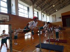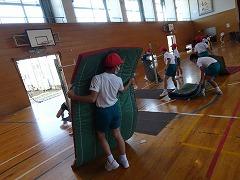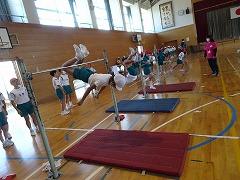 ↓4年生器械運動発表会を行いました。例年は津幡町の4年生が一堂に会して器械運動交歓会として行っていますが、今年は校内で発表会を行い、今日は保護者の皆様にも見ていただきました。本日にいたるまで応援をありがとうございました。子供たちは緊張しながらも練習の成果を堂々を発表していました。準備や後片付けの協力の姿にも感心しました。ご家庭でも子供たちのがんばりを誉めてあげていただけますようよろしくお願いします。