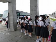 ↓天気予報は、うまく外れ、薄日の差す中で、出発式ができました。目標や約束を確認してバスに乗り込みました。