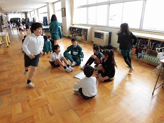 5年生が分かりやすく説明して「縄跳び」や「だるまさんが転んだ」など5年生が考える遊びをしました。