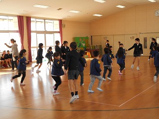 寒い体育館でしたが,由佳先生と一緒に元気に授業がスタートしました。