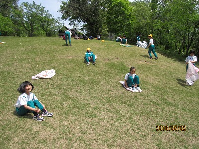 5年生は,森林公園の松葉台広場に行きました。春の自然を感じながら友だちと仲良く協力して歩いていました。