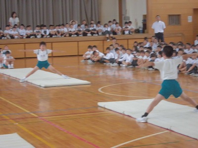 月曜日の3限目に器械運動の校内発表会がありました。