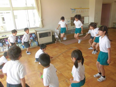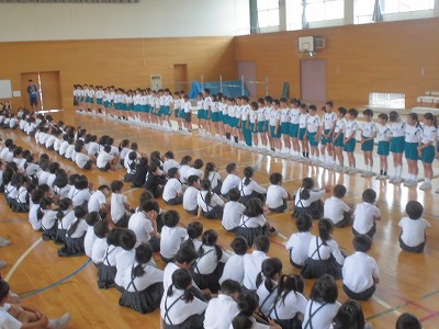 4年生が体育と放課後に練習してきた成果を全校に発表しました。