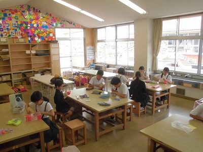 どの子も一生懸命に取り組んでいます。牛乳パックで・・・