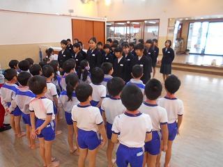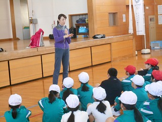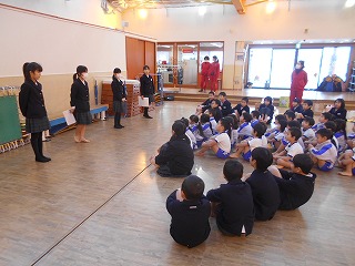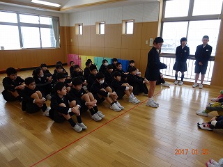 寒い体育館でしたが,由佳先生と一緒に元気に授業がスタートしました。