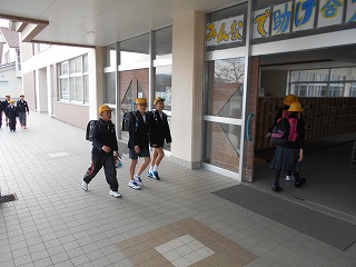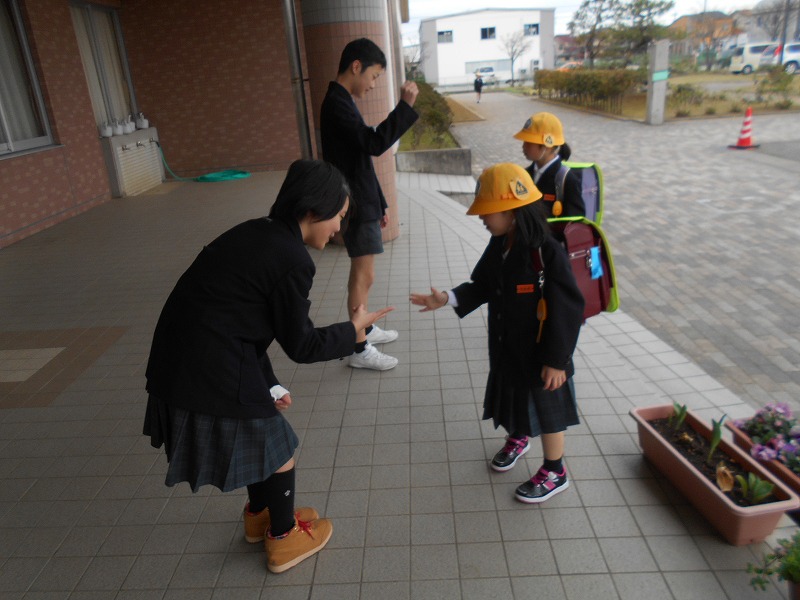 登校してきた子ども達は,計画委員会の子とじゃんけんをして楽しく玄関を通っていました。