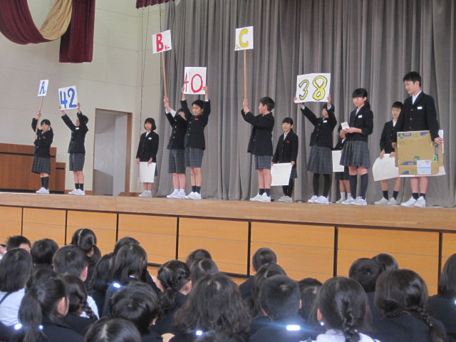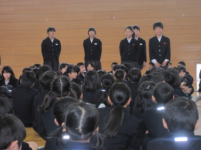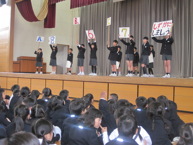 委員長,学級代表共に頼もしい抱負を全校の前で発表してくれました。とても立派でした。