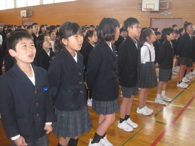 2~6年生は1年生のために,自慢の歌声で校歌を歌いました。