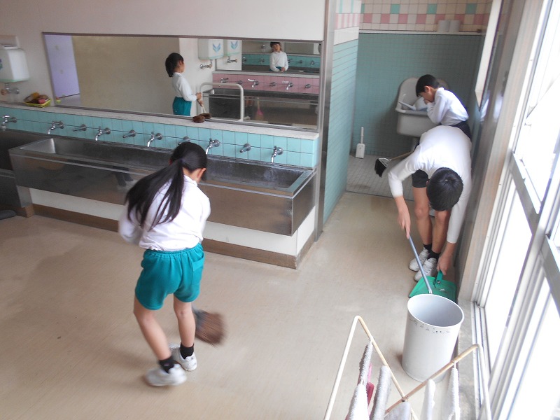 どの場所でも6年生がお手本になり,掃除場所を隅々まできれいにしていました。