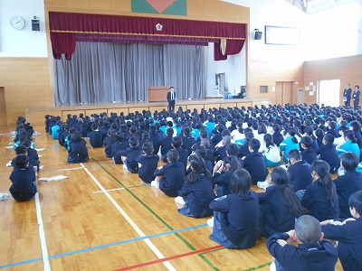 生徒指導の先生からは,生活目標についてのお話でした。4月は「おはよう。」を重点にしてきましたが,今月は「こんにちは。」に重点をおきます。あいさつを自分からし,いろいろな人を嬉しい気持ちにできるといいですね。