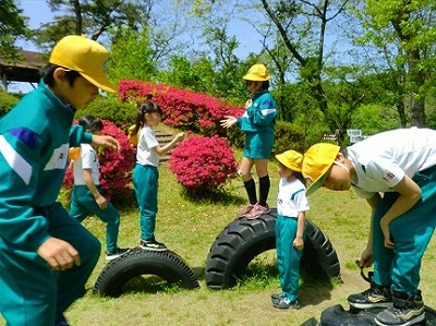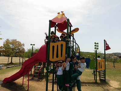 1年生にとって初めての遠足。なかよし公園に行って,元気よく遊んでいました。