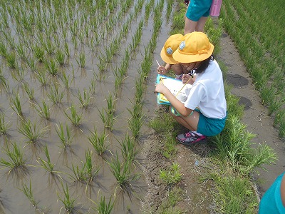 1ヶ月前に田植えした苗がどれだけ成長しているのかを観察するためです。