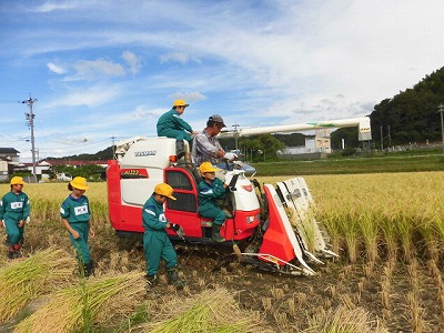 また,収穫する「コンバイン」という機械にも乗せてもらいました。貴重な経験でした。